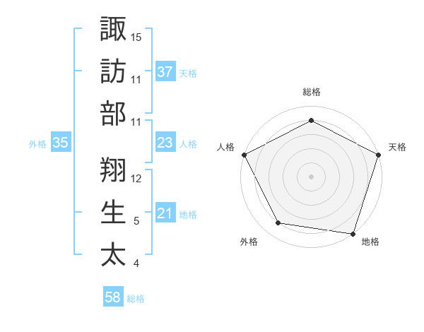 諏訪部 翔生太さんの天格は37画の5点!