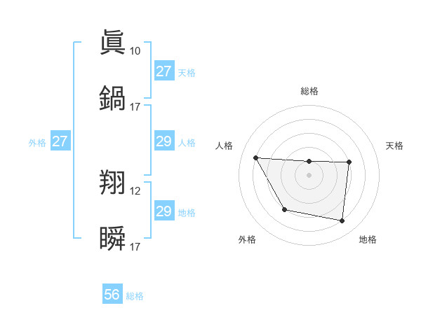 眞鍋 翔瞬さんを姓名の画数から五運を鑑定
