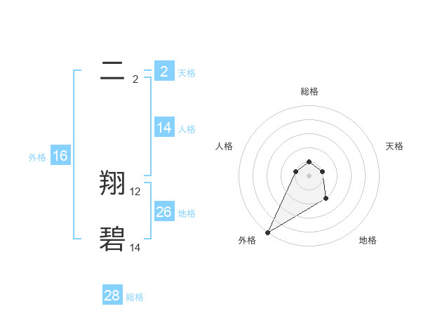二 翔碧さんの外格は16画の5点!