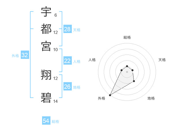 宇都宮 翔碧さんを姓名の画数から五運を鑑定