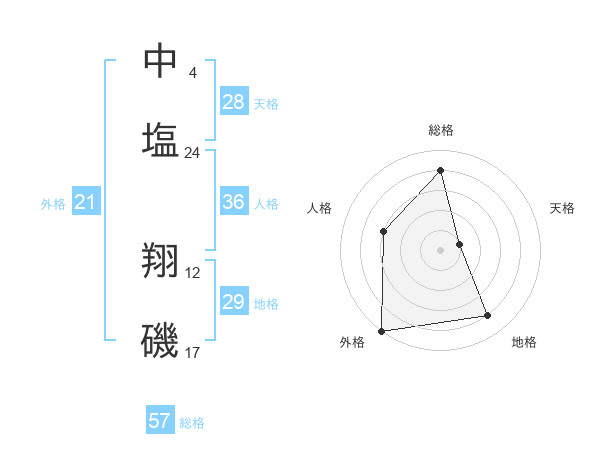 中塩 翔磯さんを姓名の画数から五運を鑑定