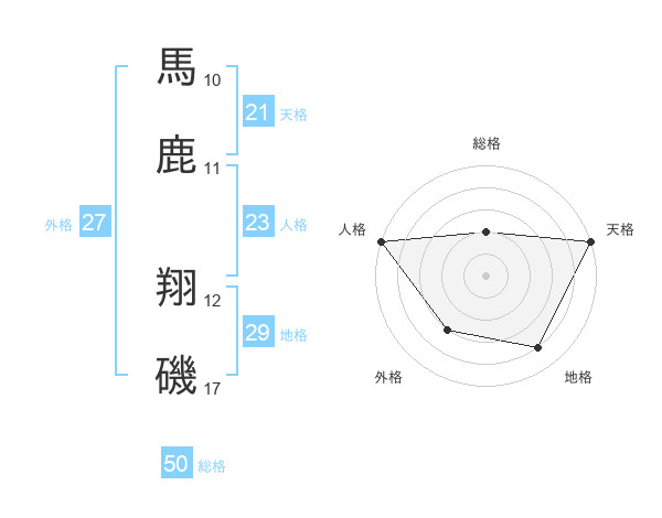 馬鹿 翔磯さんを姓名の画数から五運を鑑定