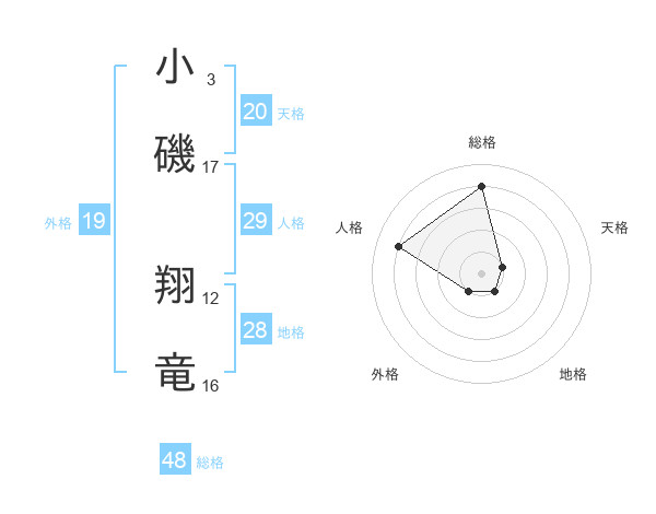 小磯 翔竜さんの総格は48画の4点!