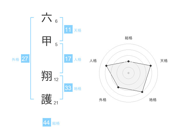 六甲 翔護さんを姓名の画数から五運を鑑定