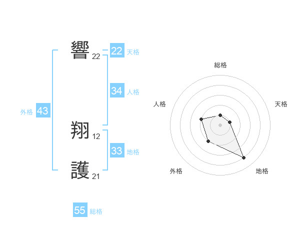 響 翔護さんの総格は55画の1点!