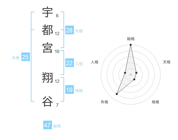 宇都宮 翔谷さんを姓名の画数から五運を鑑定