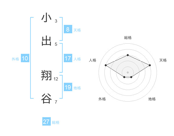 小出 翔谷さんの総格は27画の3点!