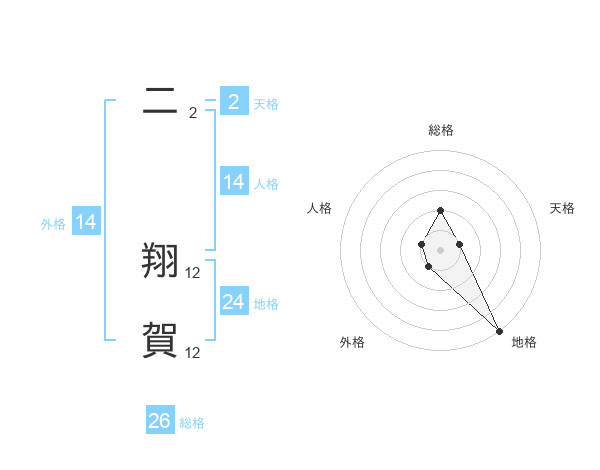 二 翔賀さんの総格は26画の2点!