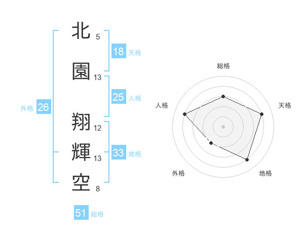 北園 翔輝空さんを姓名の画数から五運を鑑定