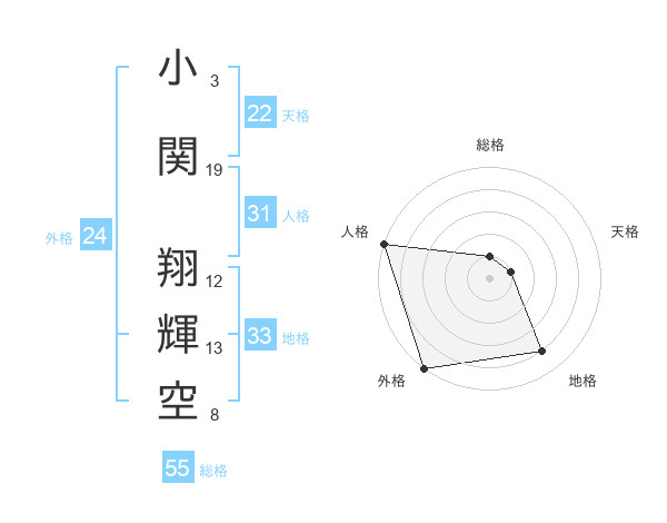 小関 翔輝空さんを姓名の画数から五運を鑑定