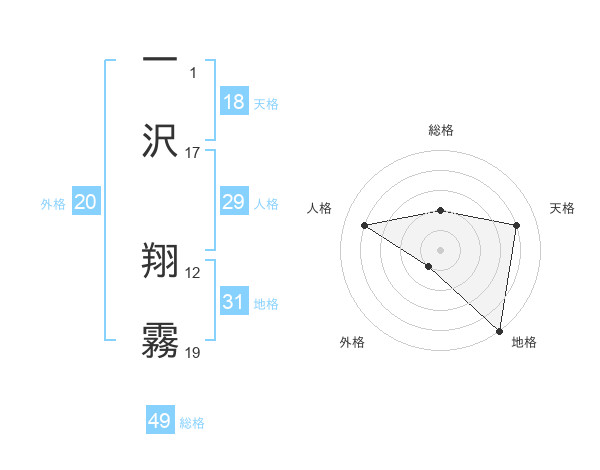一沢 翔霧さんを姓名の画数から五運を鑑定