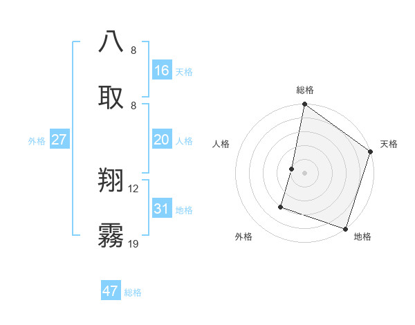 八取 翔霧さんを姓名の画数から五運を鑑定
