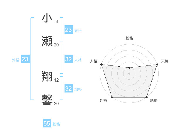 小瀬 翔馨さんを姓名の画数から五運を鑑定