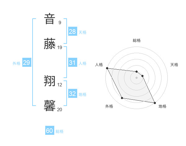 音藤 翔馨さんを姓名の画数から五運を鑑定