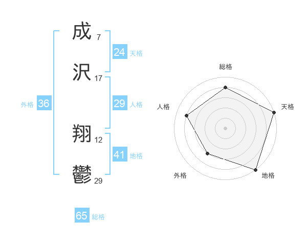 成沢 翔鬱さんの総格は65画の4点!