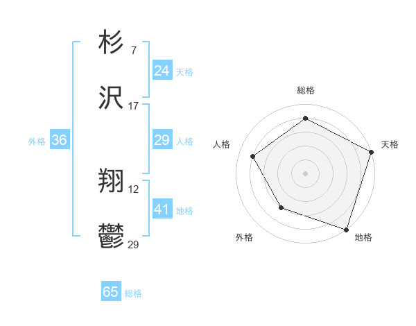 杉沢 翔鬱さんの総格は65画の4点!