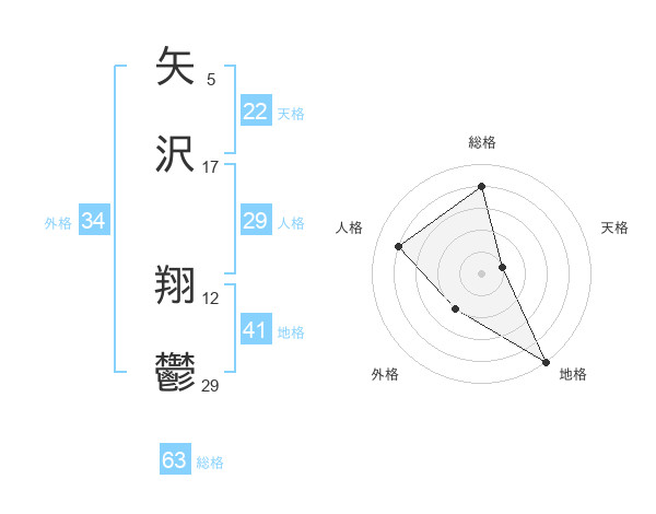 矢沢 翔鬱さんの総格は63画の4点!