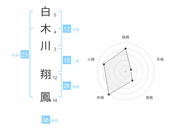 白木川 翔鳳さんの総格は38画の4点!