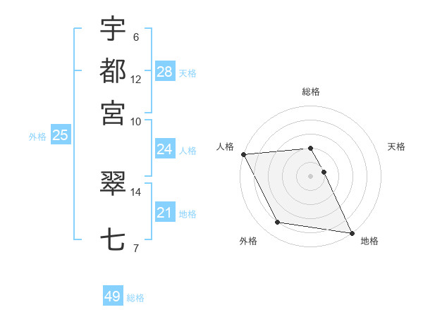 宇都宮 翠七さんを姓名の画数から五運を鑑定