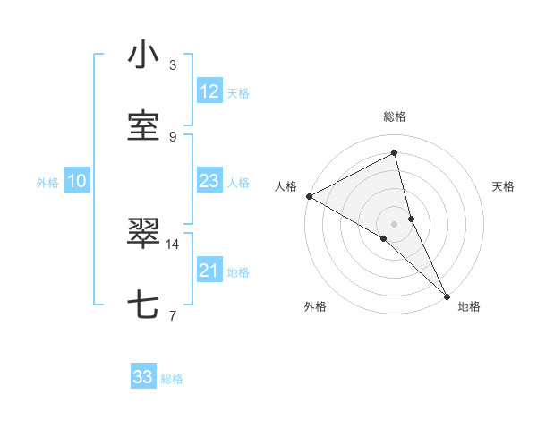 小室 翠七さんの総格は33画の4点!