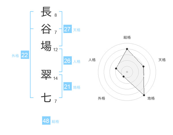 長谷場 翠七さんを姓名の画数から五運を鑑定