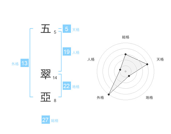 五 翠亞さんの外格は13画の5点!