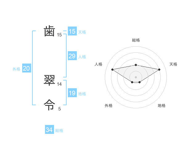 歯 翠令さんの総格は34画の2点!