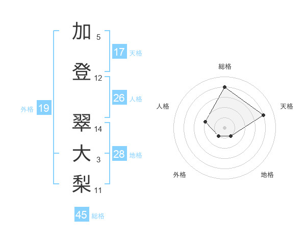 加登 翠大梨さんの総格は45画の4点!