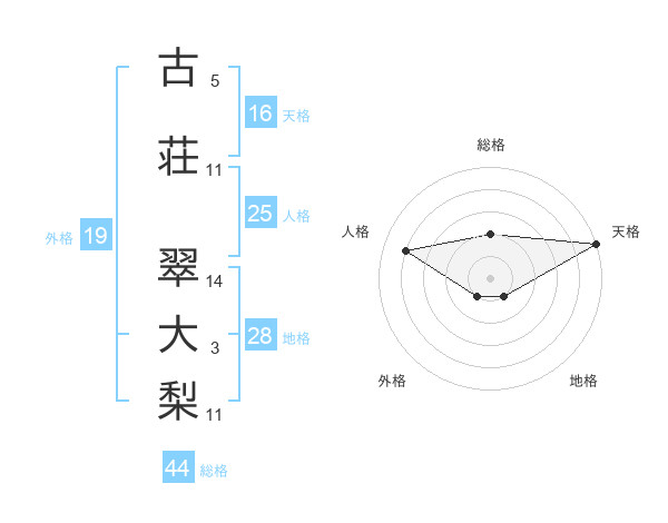 古荘 翠大梨さんを姓名の画数から五運を鑑定