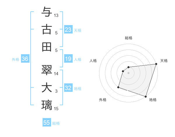 与古田 翠大璃さんを姓名の画数から五運を鑑定