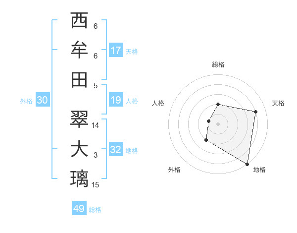 西牟田 翠大璃さんを姓名の画数から五運を鑑定