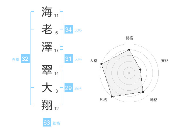 海老澤 翠大翔さんを姓名の画数から五運を鑑定