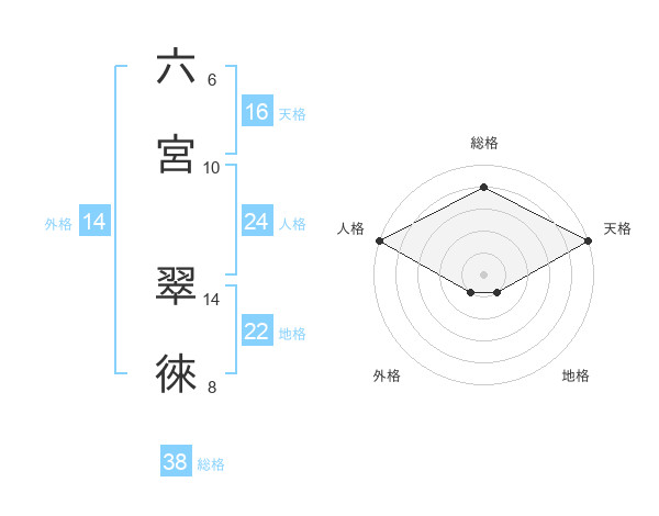 六宮 翠徠さんを姓名の画数から五運を鑑定