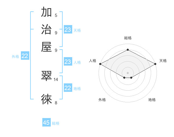 加治屋 翠徠さんの天格は23画の5点