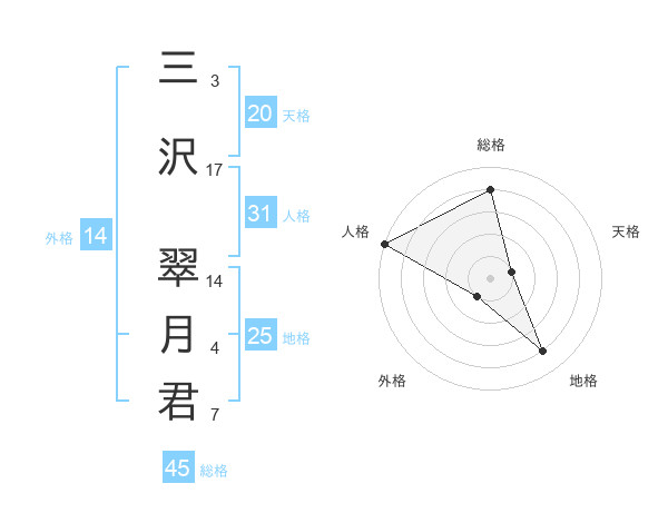 三沢 翠月君さんの総格は45画の4点!