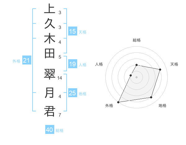 上久木田 翠月君さんを姓名の画数から五運を鑑定