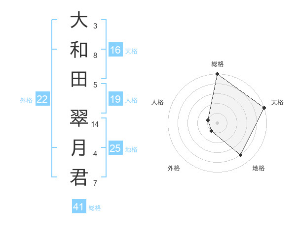 大和田 翠月君さんを姓名の画数から五運を鑑定