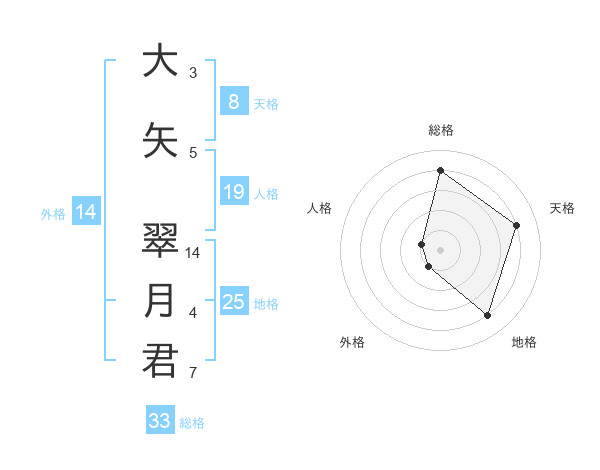 大矢 翠月君さんを姓名の画数から五運を鑑定