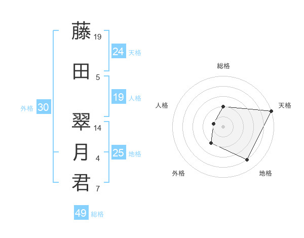 藤田 翠月君さんを姓名の画数から五運を鑑定