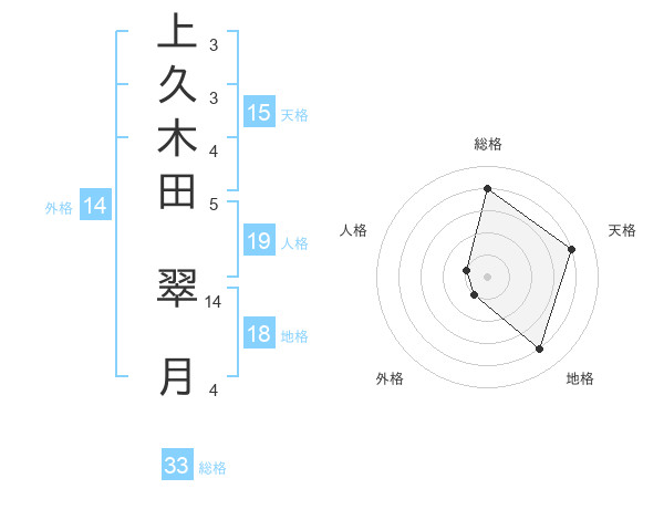上久木田 翠月さんを姓名の画数から五運を鑑定