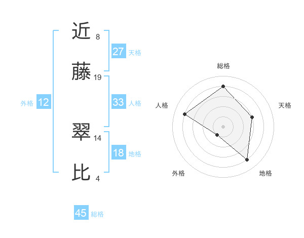 近藤 翠比さんの総格は45画の4点