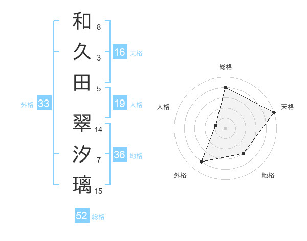 和久田 翠汐璃さんを姓名の画数から五運を鑑定