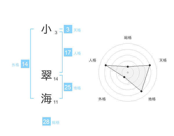 小 翠海さんの総格は28画の1点!