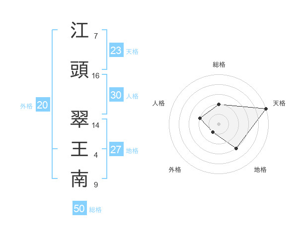 江頭 翠王南さんを姓名の画数から五運を鑑定