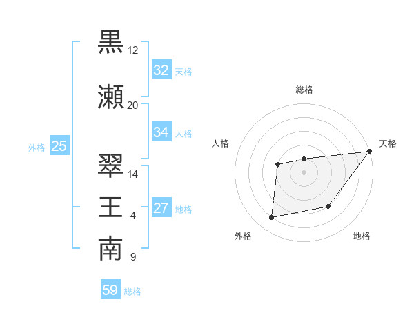 黒瀬 翠王南さんの総格は59画の1点!