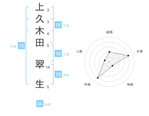 上久木田 翠生さんの外格は15画の4点