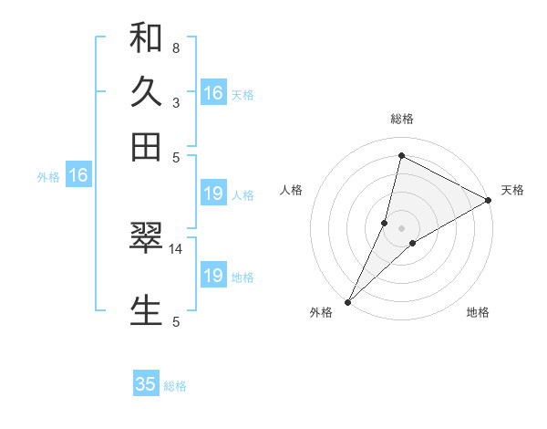 和久田 翠生さんの天格は16画の5点!