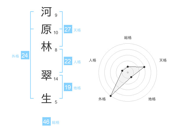 河原林 翠生さんを姓名の画数から五運を鑑定