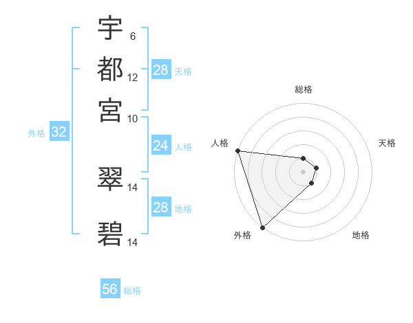 宇都宮 翠碧さんを姓名の画数から五運を鑑定