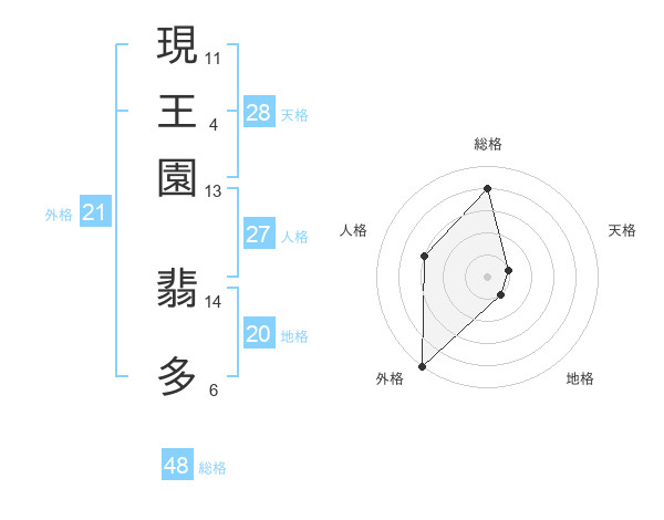 現王園 翡多さんを姓名の画数から五運を鑑定